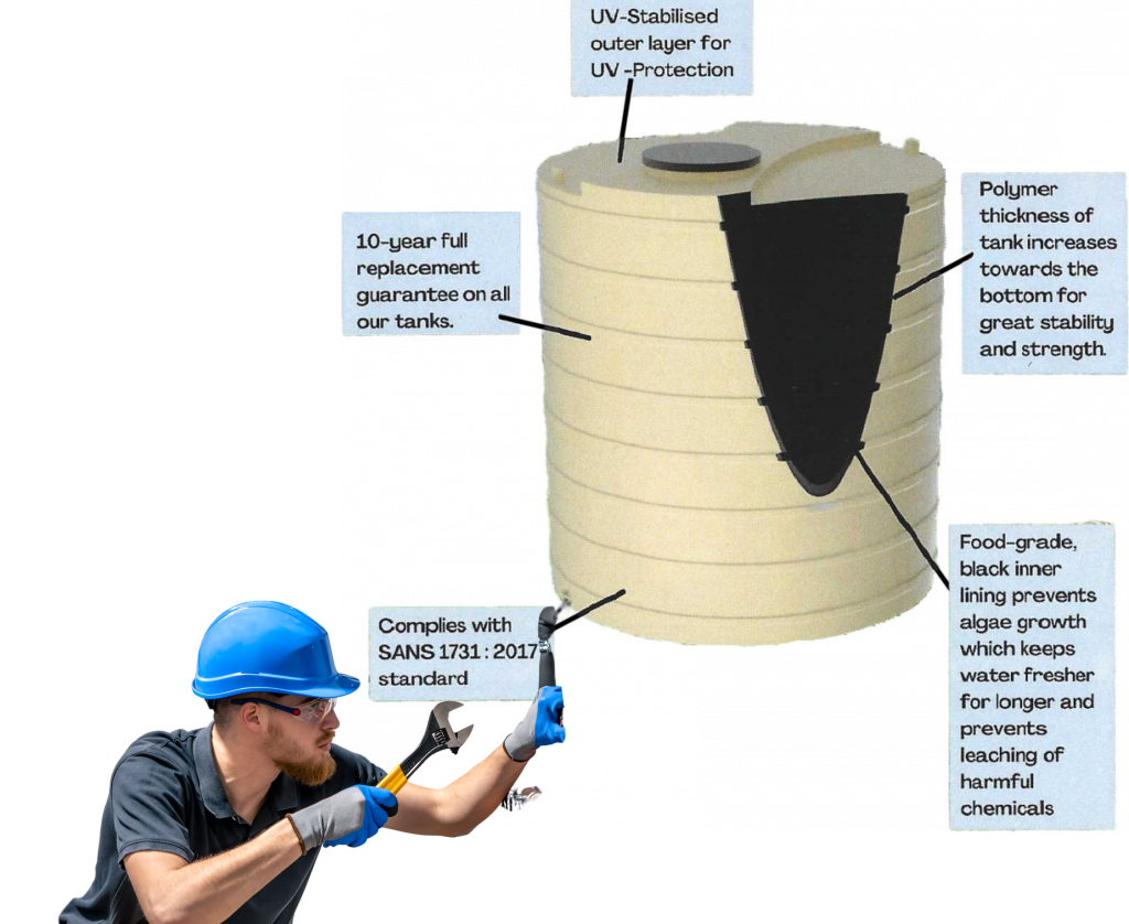 In addition to high-quality water tanks, we also specialize in water pump and pressure pump installations. Whether you need a pump for residential, commercial, or agricultural use, we’ve got the right solution to ensure consistent water flow and optimal pressure.